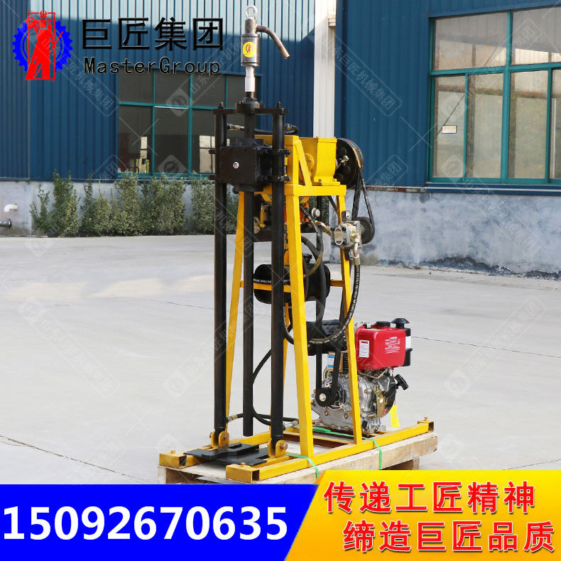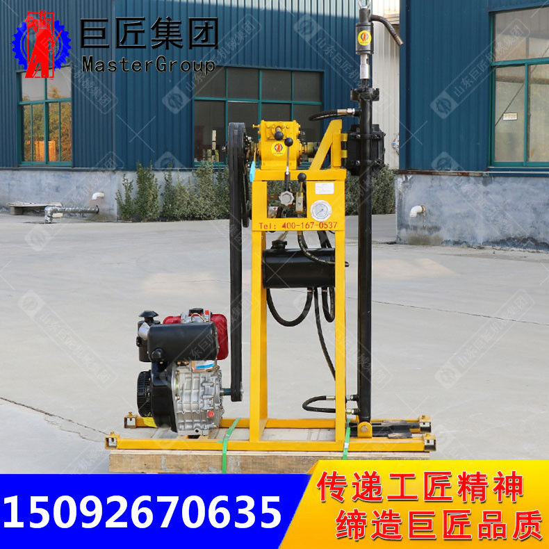 是一款具有油压给进的高中低速钻机。该钻机适用于山地、丘陵、河道等复杂地形的地质钻探、建筑物的工程地质勘察、爆破孔的钻进等方面。为满足不同用户的需求,该钻机可选配柴油机、汽油机或电机三种动力中的一种,默认为柴油机动力。