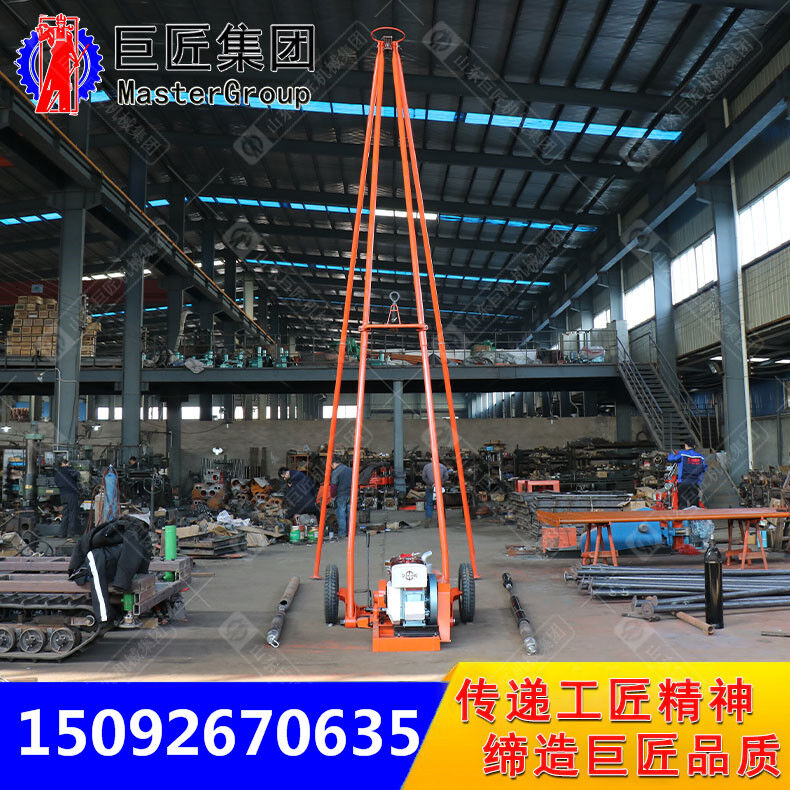 操作简单而且机械化程度高,在正常情况下只需定员三人。 重量轻、结构紧凑、解体性能好、搬运方便,在山区可拆搬,因配备有一对胶轮,故在城市和其它道路平坦地区可用汽车拖带来实现施工孔位的移动。