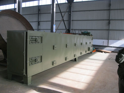 网带烘干机将所要处理的物料通过适当的铺料机构,如星型布料器、摆动带、粉碎机或造粒机,分布在输送带上,输送带通过一个或几个加热单元组成的通道,每个加热单元均配有空气加热和循环系统,每一个通道有一个或几个排湿系统,在输送带通过时,热空气从上往下或从下往上通过输送带上的物料,从而使物料能均匀干燥。