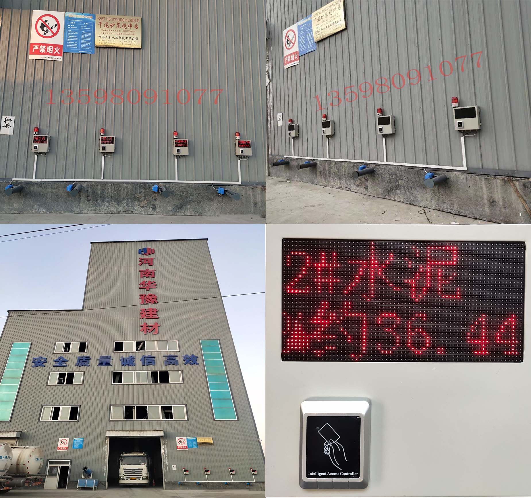 每个料仓配备一台地面控制显示终端,安装在料仓上料口上方,通过与控制终端、安全上料阀等系统联动,从而实现实时显示与之对应的料仓名称、余料百分比与余料重量、控制安全上料阀的开关功能。
