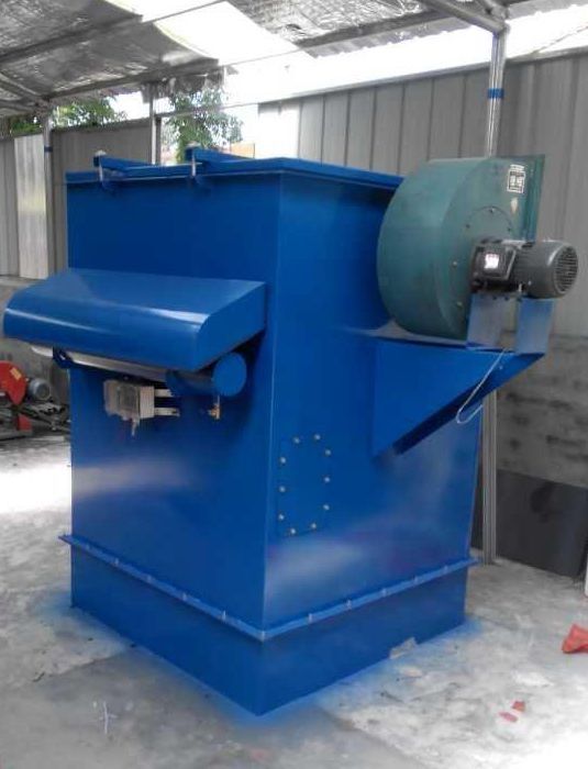 脉冲除尘器是当含尘气体由进风口进入除尘器,首先碰到进出风口中间的斜板及挡板,气流便转向流入灰斗,同时气流速度放慢,由于惯性作用,使气体中粗颗粒粉尘直接流入灰斗。起预收尘的作用,进入灰斗的气流随后折而向上通过内部装有金属骨架的滤袋粉尘被捕集在滤袋的外表面,净化后的气体进入滤袋室上部清洁室,汇集到出风口排出,含尘气体通过滤袋净化的过程中,随着时间的增加而积附在滤袋上的粉尘越来越多,增加滤袋阻力,致使处理风量逐渐减少,为正常工作,要控制阻力在一定范围内(140--170毫米水柱),一旦超过范围必须对滤袋进行清灰,清灰时由脉冲控制仪顺序触发各控制阀开启脉冲阀,气包内的压缩空气由喷吹管各孔经文氏管喷射到各相应的滤袋内,滤袋瞬间急剧膨胀,使积附在滤袋表面的粉尘脱落,滤袋恢复初始状态。清下粉尘落入灰斗,经排灰系统排出机体。由此使积附在滤袋上的粉尘周期地脉冲喷吹清灰,使净化气体正常通过,保证除尘系统运行。