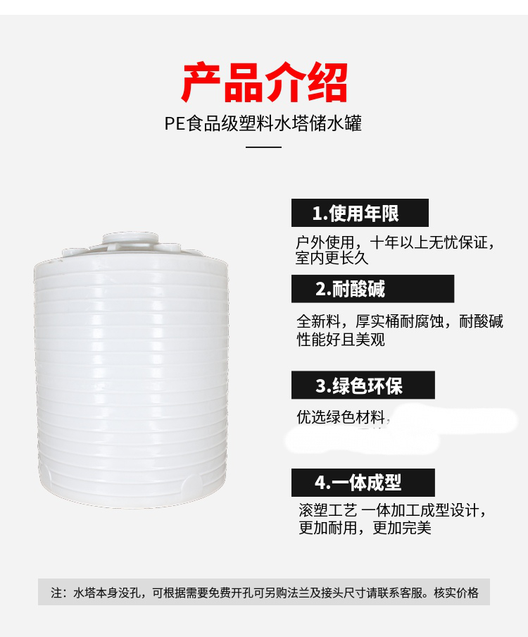 贵州1吨水箱、贵阳储水箱、贵阳水塔用途:高层建筑二次供水、蓄水水处理净化设备配套工业用冷却水化工制剂、化工原料、各种油品、饮品的储存、运输。质量保证:7天包换(非人为及不可抗拒的因素),1年免费维修。塑料平底储罐:主材:进口韩国聚乙塑胶原料。 常用颜色:橙、蓝、绿、黑等。性能:一次成型内外光滑,具有良好的卫生性与抗紫外线能力。撞击,搞强震,不易老化,不长水藻,易清洗,安装移动方便。应用范围:高层建筑二次供水,城镇,农村屋顶蓄水,广泛应用于食品、制药、宾馆、酒店、电子、化工喷织等行业。 安装说明及注意事项:1、每只水箱开进水、出水、排污三孔,有特殊要求另定。2、屋顶水箱应放置在受力状况良好的楼梯开间或平台上。3、水箱为普力容器,故控制液位应加装浮球或其它有效控制装置。