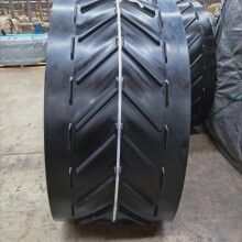 人字型花纹 特征:带面上有高于带体的“人”字型花纹,花纹可是开口也可是封闭的,每一种花纹又可分为高、中、低三种。 用途:适用于≤40度倾角的粉状、颗粒状、小块物料输送、也可输送袋装物料。
