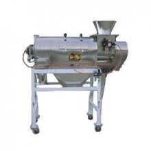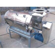 本设备筛网为圆筒状,置于机体内,物料通过螺旋输送系统后,和气流混合,雾化进入网桶内;通过网桶内风轮叶片使物料同时受离心力和旋风推进力,从而迫使物料喷射过网,由细料排出口排出,不能过网的物料沿网桶壁从粗料排出口排出。