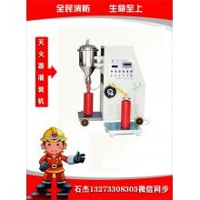 灭火器充装设备内容干粉灭火器充装设备的目的是为了解决上述现有技术的不足, 提供一种新型灭火器充气装置,充气安全性高,使得人员在灭火器充气过程中不直接接触灭火器, 操作方便, 其体积小, 成本低, 并且可节省气体,具有灭火器拆卸装置,可适合灭火器生产厂家和维修人员的使用。 干粉灭火器充装设备解决的技术问题所采用的技术方案是: 一种箱式防护型干粉灭火器充装机及充气装置, 包括带进气口的充气头和充气平台, 充气头上设有推进装置, 其特征是与上述的充气平台组成有安全箱体, 充气平台设在安全箱体上部,安全箱体侧面设有送气框口, 安全箱体上部的充气平台开设有充气缺口, 充气头设在充气缺口的一侧。当要对灭火器进行充气时,手提灭火器通过送气框口放入安全箱体内,灭火器机头进入充气缺口, 充气头对准灭火器机头, 推进装置把充气头往灭火器机头推进, 接口处顶紧,顶紧后,压下灭火器压把,然后打开充气阀门,就开始充气。由于灭火器瓶体位于安全箱体三个侧板和充气平台内, 操作人员位于安全箱体的其中一个侧板位置, 安全箱体为如钢板等材料把操作人员与灭火器隔开,从而有效保护操作人员的人身安全。