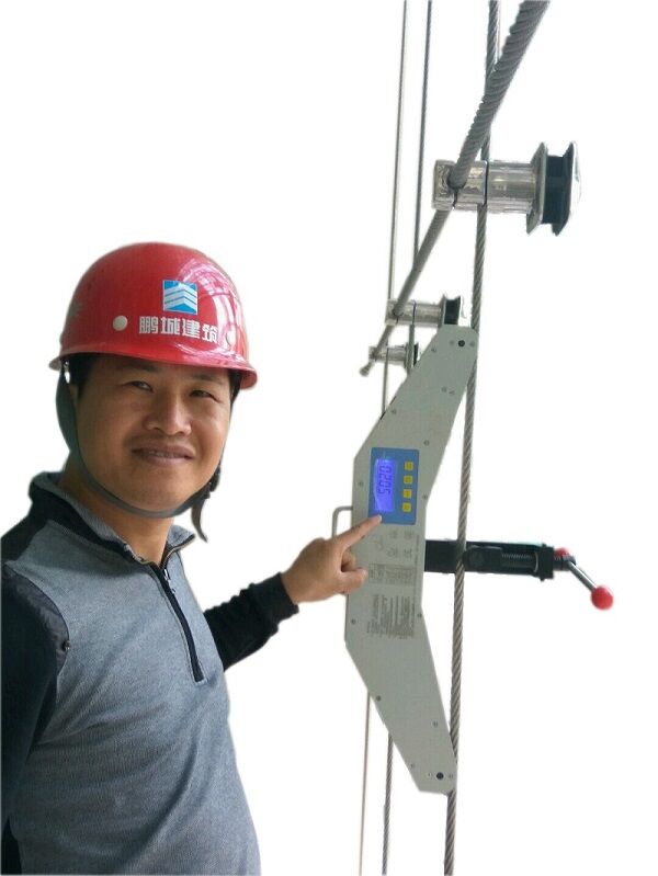 旋紧手轮至钢索顶到限位即显示钢索拉力。
