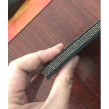 耐热输送带分为普通耐热带和强力耐热输送带,普通耐热带强力层为涤棉帆布(CC56),强力耐热带强力层为EP(具体又分为EP100型、EP150型,EP200型、EP250,EP300型、EP350型,EP400型、EP450型、EP500型等)。 用途:主要用于冶金、建筑等行业,输送烧结矿、焦炭、水泥熟料等高温物料,物料温度不超过800℃,带面温度不超过220℃的条件下使用。 特性:采用三元乙丙橡胶为覆盖层,骨架材料采用国内专用的耐高温帆布,独特的配方设计,解决了因乙丙橡胶饱和度高,粘合性差,层间附着力低的关健问题。具有带体轻,寿命长(约2-4倍),耐热性能好的特点。 物理性能: 强度 老话后与老化前之差(IRHD) 23 老化后的最大值(IRHD) 88 拉伸 强度 性能变化率降低,% 40 老化后的最低值,MPa 5 扯断 伸长度 性能变化率,% 60 老化后的最低值,% 150 耐高温钢网输送带是用钢丝纵横编制而成,钢网表面镀锌或镀铜,在钢网上下表面覆盖橡胶层,运输高温物料过程中,整体表面不脱层,使用性能比分层式耐热输送带更可靠。