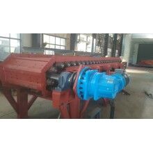 板式给料机的动力由传动装置的电动机驱动,经减速机减速后,再经传动链轮把动力传到主动轴上。此时,装在主动轴上的两个链轮就跟轴转动。另外与头部、尾部链轮相啮合的两条链条也随着主动链轮和尾轮的转动而向前移动,链板安装在链条上面与链条作同步运动。