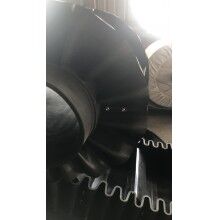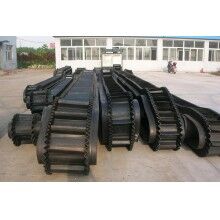 而使用比较多的就是那种带挡边带隔板的输送带,也就是大倾角输送带。在这个输送带当中隔板的作用其实有两个:一个是起到提升的作用,隔板是在挡边中间,物料就是由给料机落入到各个挡边中央,由输送机提升到指定高度。而另一个作用就是料斗的作用,每条大倾角挡边输送带由若干个隔板组成。每个隔板都根据客户的需求设定了相等的间距,形成了一个小小的储物室。