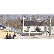 通过指定规格的筛网分出筛上物,筛下物,石子沿振动筛方向流入石子储料池,砂子经筛孔漏下,由螺旋输送机输送到砂池。砂石专用直线筛采用柔性驱动,其偏心块所产生的激振力驱动振动筛产生垂直及水平方向的运动,使混合料分离,从而达到对物料进行筛选和分级的目的