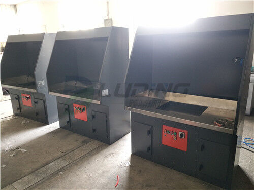 2、该打磨除尘工作台采用我公司自己的收吸式除尘方式,且在后部抽风口和台面抽风口都安装有风阀。可以根据工件的大小或打磨位置的不同关闭相应的风阀.以提高其它部位的风量来达到提高除尘效果。该种方式很大地节省了用风量.降低了运行费用。