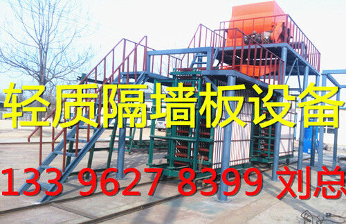 合轻质墙板生产线,主要适用于复合轻质隔墙板的生产,生产原料主要有:水泥、粉煤灰(南方地区如没有粉煤灰,可以用石粉或火山灰代替,亦可不加)聚苯颗粒,辅助添加复配添加剂、砂子。复合轻质墙板常规规格:2440mm*610mm;厚度型号主要有:60mm,75mm,90mm,100mm,120mm,150mm,180mm。搅拌站结构紧凑,外形美观,占地面积小,功能齐全。采用自动化上料系统,电子秤聊系统自动计量,各种原料计量准确;搅拌机搅拌效率高,搅拌一罐浆料仅需10-15分钟;配备各工位操作平台,保证生产方便、安全。轻质墙板成型模具车,主要组成分为:模具车底架、格栅、铝合金模具。格栅加工精度高、平整度好;底模及竖模均采用铝合金材质,经久耐用不易变形,对接密实不漏浆,生产的墙板榫槽美观。牵引系统可实现模具车在轨道上的自由运行,前进、后退均可实现遥控控制;摆渡系统可实现模具车在多条轨道间的转换。多轨道并行,节约占地面积,实现厂房利用率,同时方便后期扩产需要。