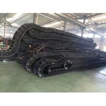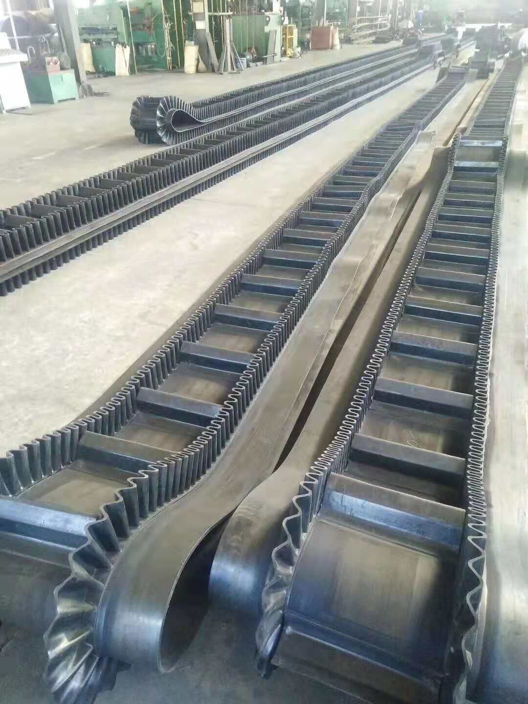辽宁挡边输送带厂家,波状挡边输送带由基带、挡边、横隔板3部分组成。挡边起防止物料测滑撒落的作用。为便于绕过滚筒,档边设计成波纹状;波状挡边输送带横隔板的作用是承托物料,为了实现大倾角输送,采用T型TC型。波状挡边输送带档边和横隔板是用二次硫化的方法与基带连接的,具有很高的连接强度 .一、产品特点(普通型大倾角波状挡边输送带):