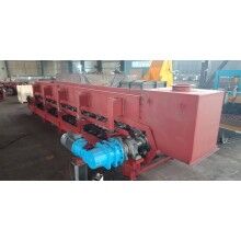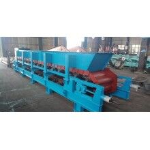 板式给料机结构组成:底座、机架、机头、驱动轮、机尾张紧轮、上下托辊、链带、槽板、受料槽、卸料槽和封闭栏板组成。