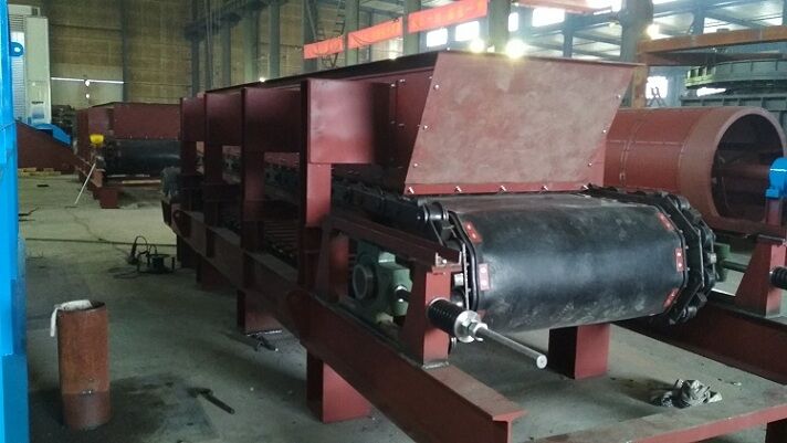 我公司研制的新型板式喂料机,结合皮带输送机和板式喂料机的优点,能输送含水率高的粘性物料,独特的新型刮料装置,能把粘在高强皮带上的料自动清理下来,清理下来的物料掉到下道工序上。