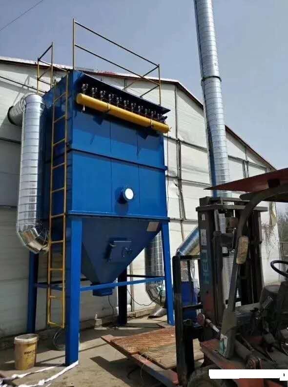 单机脉冲袋式除尘器具有操作简单、清灰连续、阻力稳定、过滤速度高、内部无运动机件、设计简单等特点,是一种高效能的布袋除尘器。脉冲布袋除尘器是一种下进风的逆喷布袋除尘器。除尘器布袋利用压缩空气进行周期性喷吹,喷吹周期为30~60秒,喷吹时间0.1~0.2秒。