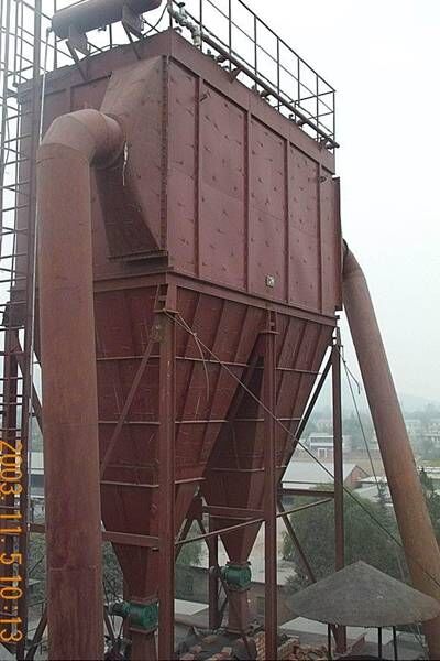 含尘气体由进气口进入灰斗经容积式分离后进入滤袋式(或通过敞开法兰口直接进入滤袋室),较粗颗粒落入灰斗或灰仓,含尘气体透过滤袋过滤为净化气体后进入净气室,再经净气室排气口由风机排出。粉尘积附在滤袋的外面,且不断增加,使袋式除尘器的阻力不断上升,为使设备阻力不超过1200Pa,袋式除尘器能继续工作,需定期清除滤袋上的粉尘。清灰时由脉冲程序控制仪定时按程序起动各脉冲阀,使分气包内的压缩空气(气压0.5~0.7MPa)由喷吹管孔眼喷出(称一次风),通过文氏管诱导数倍于一次风的周围空气(称二次风)进入滤袋,使滤袋在瞬间急剧膨胀,并伴随着气流的反向作用抖落积附在滤袋外表的粉尘,达到清灰的目的。