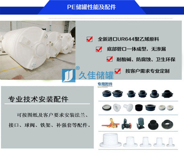 久佳新型20000l液碱pe塑料罐 盐酸储存罐材质 加厚耐酸碱盐pe罐具备独特的外形,不同于其他常规储罐,适合存放稀硫酸、任何浓度盐酸、任何浓度次氯酸钠、液碱、漂白水、氢氧化钠、三氯化铁、酸碱盐溶液、电镀废水、工业废水、污水、纯水、聚羧酸减水剂、外加剂等一系列危险化学品,PE储罐使用韩国进口的原料LLDPE为加强型,性能耐酸耐碱,不易老化,是环保、水处理、危废处理、化工、食品、酿造、印染、建材、石英砂行业的选择。主要产品有塑料储罐、PE水箱、pe储罐、盐酸储罐、漂白水储罐、次氯酸钠储罐、液碱储罐、氢氧化钠储罐、双氧水储罐、三氯化铁储罐、稀硫酸储罐、减水剂储罐、外加剂储罐、污水储罐、原水储罐、废水储罐、纯水储罐等等。具体介质及产品请来电咨询。