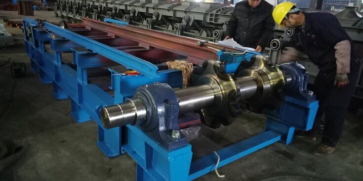 尾轮组做为从动轮,同时也是卸料滚筒,在轴座旁设有调整丝杆,可随时调整张紧力。