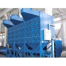 在正常运行时,如:重力、惯性力、碰撞、静电吸附,筛滤作用等。含尘空气由顶部入口进入滤筒式除尘器,较大的粉尘颗粒因截面积增大,风速下降而提高直接沉降,较小的烟尘粉尘颗粒通过滤筒。粉尘被捕集在过滤筒外边,清洁空气则经由滤筒中心进入清洁空气室,再经出口由引风机排出。随着过滤不断进行,滤筒表面的烟尘粉尘越积越多,阻力不断升高,及至滤筒清灰时,固态控制将操纵电磁阀以打开一个空气隔膜阀,于是高压空气便直接冲入所选滤筒中心,把捕集在滤件表面上的粉尘吹扫一清,使滤筒再生。粉尘则随主气流所趋,并在重力的作用下向下落入尘斗中。周而复始,连续过滤,使设备连续进行得到保障。