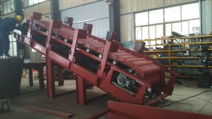 1) 在圆弧形承载链板上安装齿型机构,以增加链板与物料间的摩擦力,同时还可将丝状物拉断。