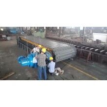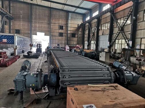 (3)辊体通过卡键定位在通轴上,并锁紧,辊体长度与负荷槽板上固定运转链条的加厚槽板等长并对应,支承回程槽板负荷。