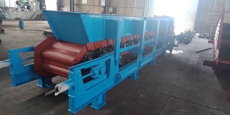 该装置的安装要点在于对钢丝绳仲人下料口深度和弹簧拉力的调整,要以不断料不溢料为准。钢圆盘离给料机过近,稍微有点料层厚度板喂机就会停止,影响正常下料;如果过高又起不到防溢料的作用。弹簧拉力过大过小也是如此。因此,调节时要反复耐心地进行,相互配合,才能达到预期效果。