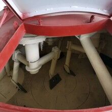 卸料门的开关采用带缓冲装置的工程液压油缸,保证了开关门的平稳性及可靠性。