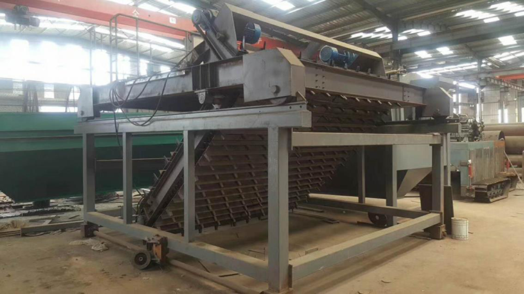 由操作工按下输送按钮启动链板输送机将料袋输送出包装位置,待叉车来把托盘运走。