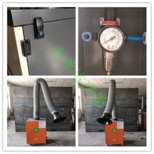 焊烟净化器通过风机引力作用,焊烟废气经过万向柔性吸气臂设备向吸尘罩吸入焊烟净化器进风口,进风口设有阻火器,火花经过阻火器被阻留,烟尘气体进入沉降室,利用重力与上行气流,先将颗粒废气直接将至灰斗,微型颗粒烟尘被滤芯捕集在外表面,洁净气体经滤芯过滤净化后,由滤芯流入洁净室,洁净空气又经过活性炭过滤器吸附进步净化后经风口达标排出。
