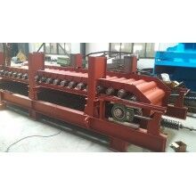 (1)将输送链条和行走轮功能分开,行走轮放置在外侧,位置不变,输送链条改为两条分体式。改造后需对头尾链轮进行再加工,两链轮盘原距离为1550mm,改造后链轮盘距离为950mm,此外,还需对轴进行加工处理,但不必更换。