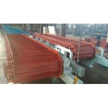 确定要改动的部件,利用大修时间,将头轮和尾轮拆除,对轴进行加工,重新安装;槽板拆除后,对与输送链条配合的定位孔进行加工;行走轮固定座需焊接至槽板上的,在线下加工完成后焊至槽板上;支重系统等可在链轮加工期间完成,整个改造过程较为紧凑。