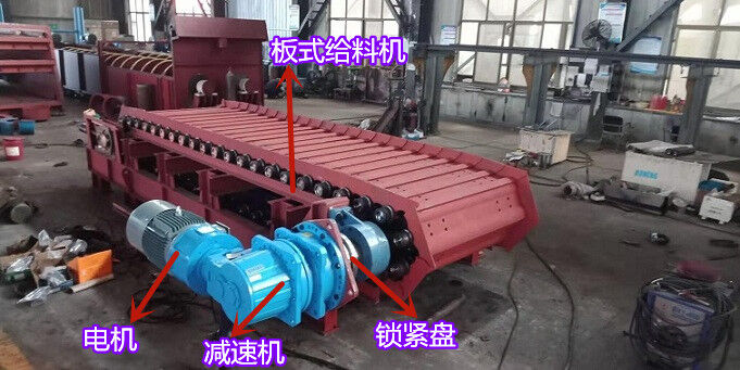 重型板式给料机由驱动机构、机架部、链板装置、支重轮、拖链轮和拉紧装置等零部件组成。