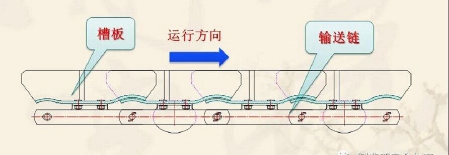 由:1、槽板2、链节等件组成,槽板为双圆弧搭接式,采用低合金钢板组焊而成,强度高,耐磨损不漏料。