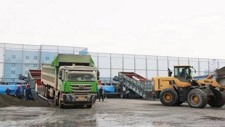 2)侧倾自卸运煤汽车直接卸煤至地表给料机的接收料斗;