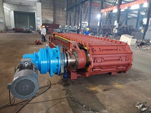 3) 垃圾成分的复杂性,易抱团,不易分散,从受料斗中拉出时 ,板式给料机上料层较厚,易间断性成堆地掉入下道设备,给下道设备带来新的难题。 为了保证从料斗中拉出的垃圾能均匀地送入下道设备 ,在板式给料机头部卸料位置设有一均匀拨料滚筒,其左右、 上下位置均可调整,以保证能均匀布料。