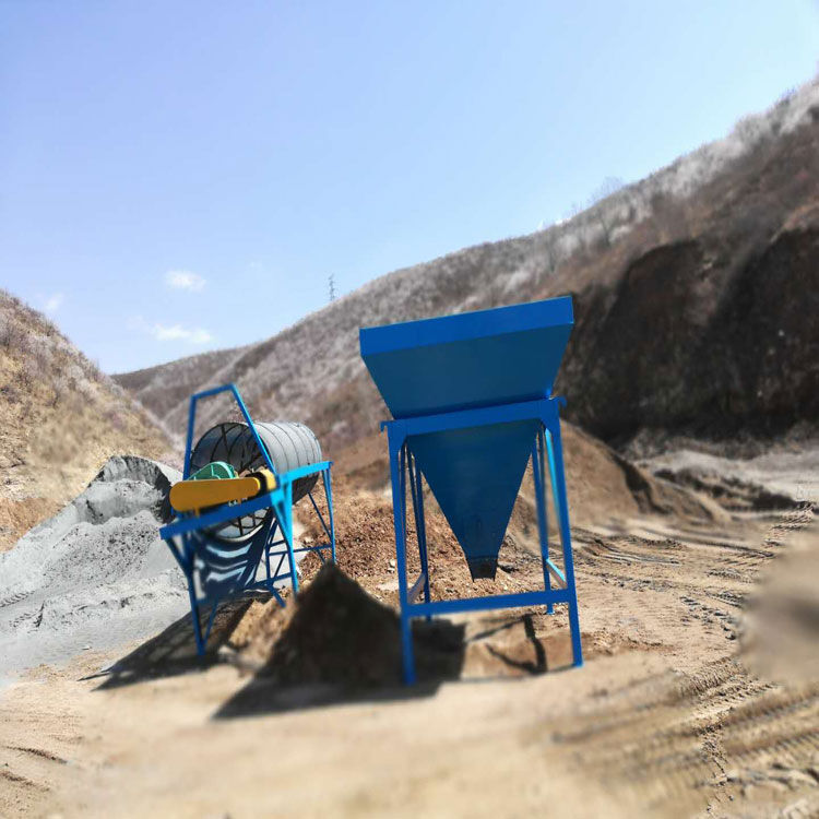 整个设备由原料储料斗、原料供料皮带机、平置筛网、成品砂堆料皮带、弃石出料槽等组成,设备通电运转后由装载机将原料装入大容量储料斗,原料经由供料皮带投入到平置筛筒,旋转的筛筒带动原料在筒内叶片的推挤、翻滚下形成原料在筛网面滑滚的人工筛砂效果,筛出的成品砂通过集料斗落在成品砂皮带上,同时被皮带提升落下呈成品料堆、或直接落入储料斗,整个过程连续且物料分级清楚、准确。