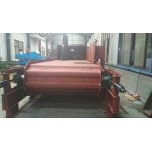 单边进料的石灰石破碎喂料仓俯视图为梯形,梯形的底边为进料边。喂料仓前壁的开口形状多为矩形,这样可方便施工。由于现在大型矿山开采粒度不均,有时会有一些大块矿石卸入料斗,发生卡料事故,使板喂机及破碎机出现空转,从而影响破碎系统能力。因此为使出料更为顺畅,前壁的开口形状可做成梯形的,使出料不会卡住,该形式的料斗已在不少水泥厂中使用。梯形的喂料仓前壁与板式喂料机相连接的非标件需从梯形逐渐收成与板式喂料机上壳体相同尺寸的矩形,否则物料容易将非标件拱坏。