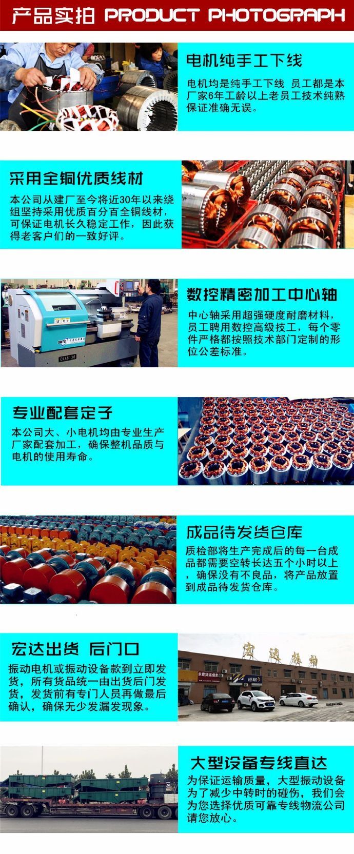 我公司是专门生产各种振动电机和振动筛的企业,ZDS振动电机是应用于振动筛的三相异步电动机,在众多振动电机型号中ZDS是我公司产品系列中的又一个新产品,它的出现使各振动筛用户多了一个选择,也使宏达振动机械振动电机的系列更完整。
