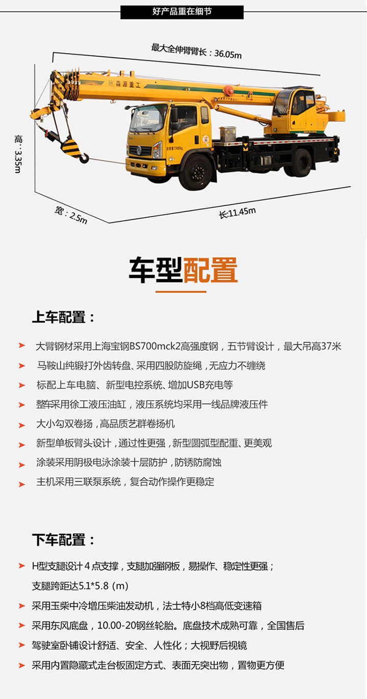 森源十吨汽车吊适用于狭窄工况的小型吊车 东风