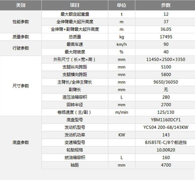 1.大臂钢材采用上海宝钢BS700mck2高强度钢,五节臂设计,最大吊高37米