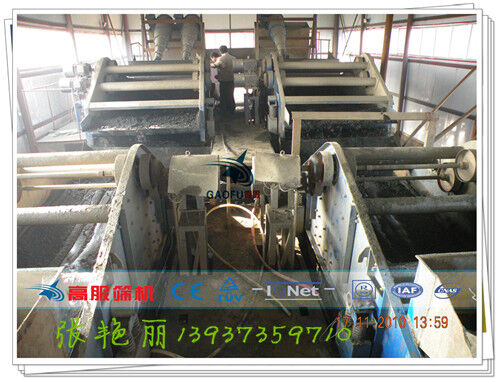 l 高效多频脱水筛主要用于对旋流器和浓密机底流的脱水作业。当高效多频脱水筛在工作时,75%左右的高浓度旋流器底流和60%左右的浓密机底流进入脱水筛后面的后侧板上,马上自动形成一个较厚的矿过滤层,水在高频振动作用下逐步穿过矿过滤层进入筛下,筛上物含水量在15%左右,完全达到尾矿干排的标准。