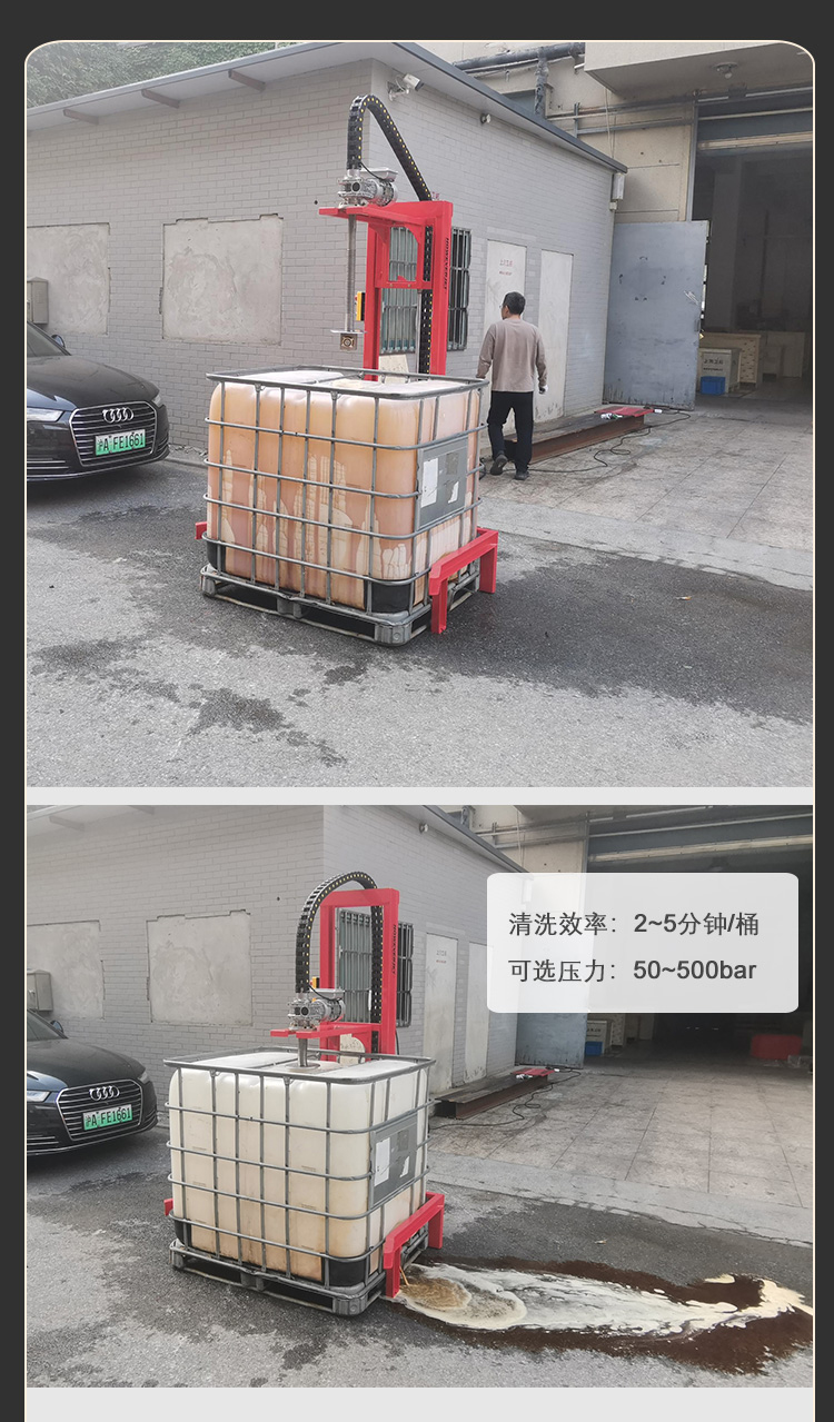 7、原料化工桶清洗设备可选配5-500公斤清洗压力,解决各种工况的清洗问题
