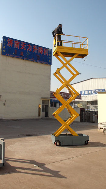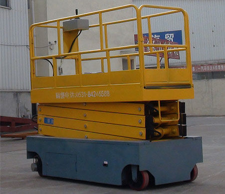 自行式液压升降平台自身具有行走及升降功能,行走可调速并有刹车装置。用电瓶带动直流电机进行行走和升降,也可选用交流电机或柴油机进行行走和升降,还可选用无线电子遥控器进行升降,不需要人工牵引,不需外接电源,移动灵活方便,使高空作业更方便快捷,是现代企业高效安全生产理想高空作业设备。本产品也可根据用户要求定制不同高度、不同尺寸的升降平台!