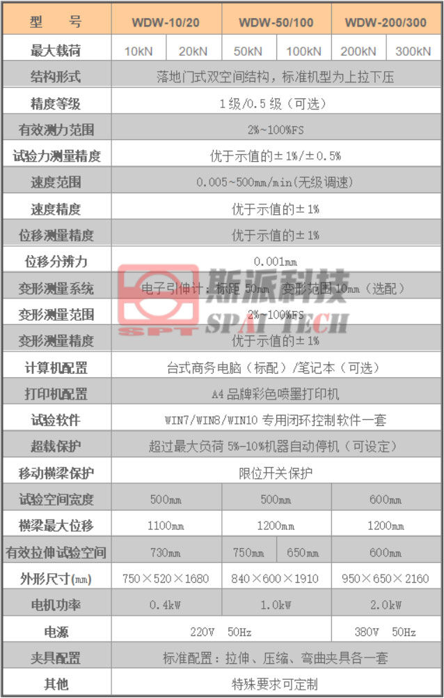 WDW系列大门式微机控制电子万能材料试验机采用稳定的门式主机结构,选用日本松下(Panasonic)伺服调速系统、精密设计同步减速系统、台湾上银(HIWIN)/银泰(PMI)滚珠丝杠、美国传力(Trancell)/世铨(Celtron)力传感器等主要部件,主要应用于金属、非金属材料及制品的拉伸、压缩、弯曲等力学性能试验,具有结构简单、稳定可靠、外形美观等特点,深受广大用户的欢迎。