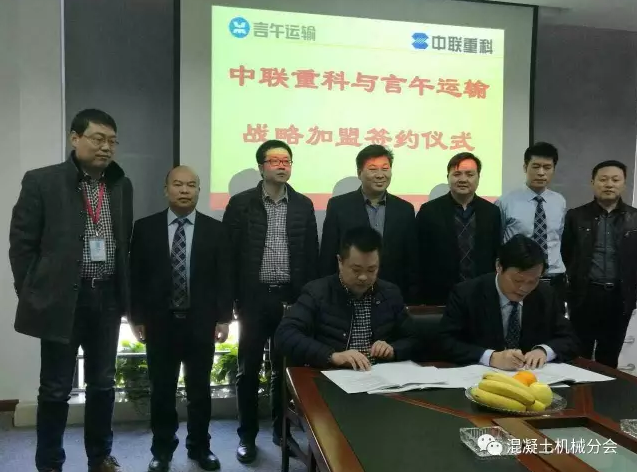 近日,中联重科股份有限公司与南京言午运输有限公司在江苏南京举行战略加盟签约仪式: