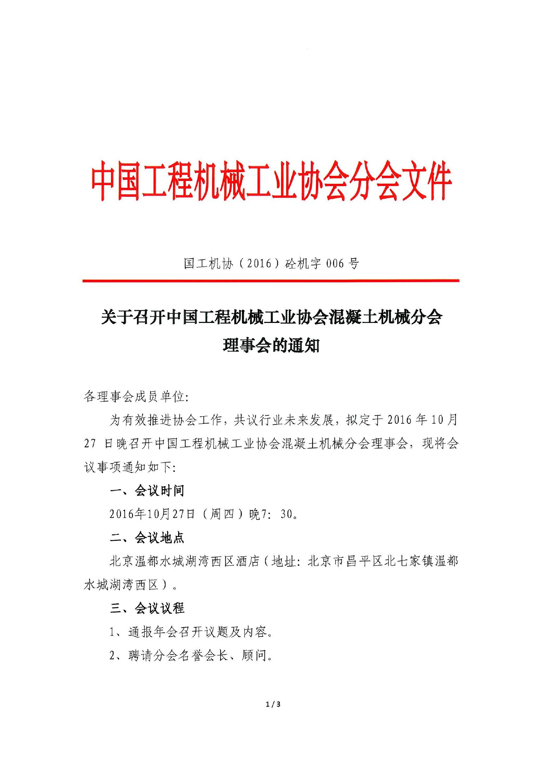 关于召开中国工程机械工业协会ued网站机械分会理事会的通知