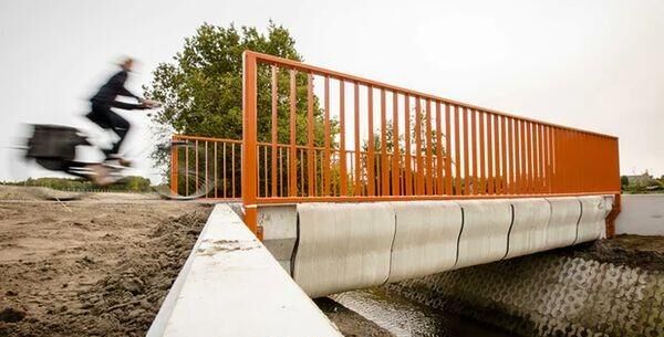 这座8米长的桥梁横跨一条水沟,以两条道路连结起来,并在与BAM Infra建设公司合作之下,测试重达2吨的桥梁承载力。设计师表示,这座桥梁虽是替单车打造,却可承载多达40辆卡车的重量。