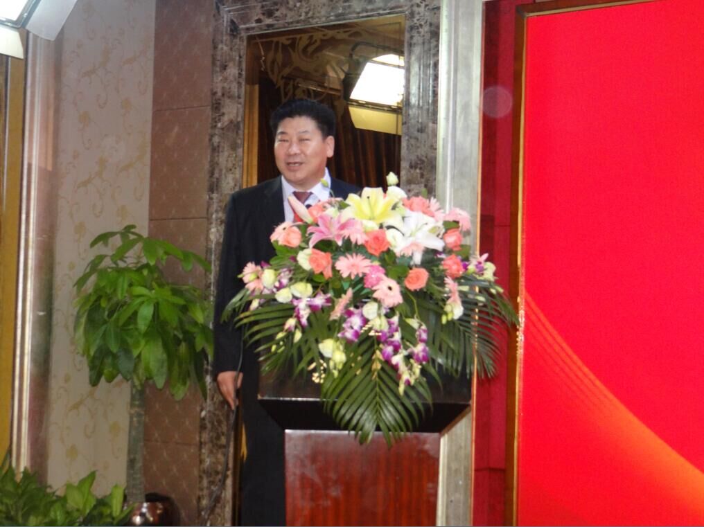 成都金瑞建工机械有限公司董事长刘成秀做《专注搅拌设备:创一流企业,造建机精品》的主题发言。