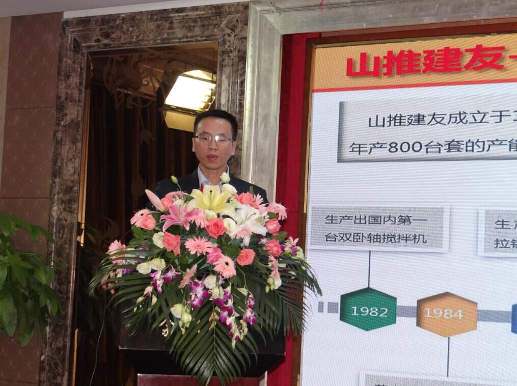 山推建友机械股份有限公司研究院院长陈自云做《中国搅拌第一,专注凝聚,力恒强》的主题发言。